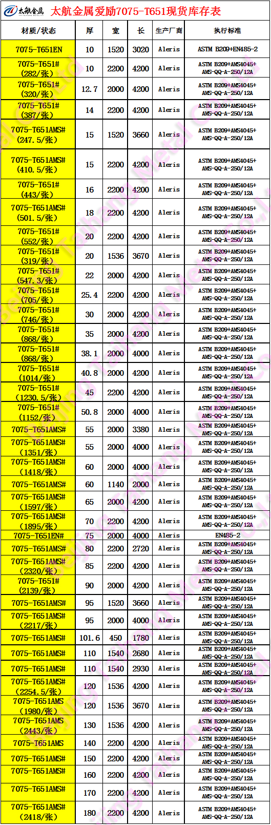 答:愛勵7075-T651高品質鋁板好,北京太航金屬有限公司是愛勵華北地區獨家代理商,我公司愛勵現貨庫存就是您的倉儲,滿足您的0庫存。
